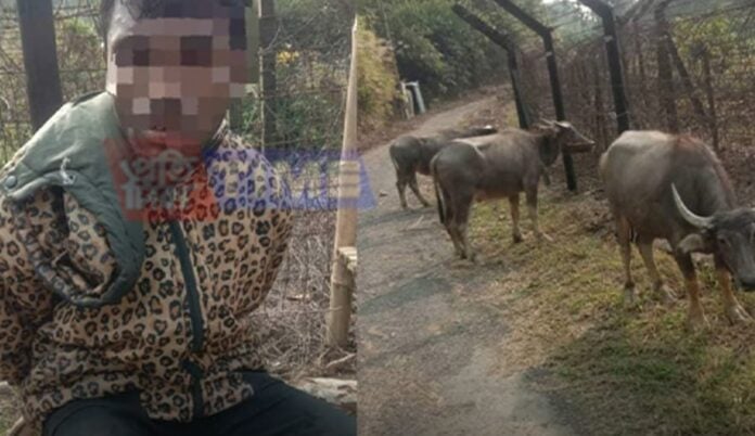 On Monday morning, the arrested smuggler was approaching the international border area in the East Jaintia hills with three buffaloes. Vigilant jawans of the 172 battalions of BSF caught him. Also, BSF seized three buffaloes.