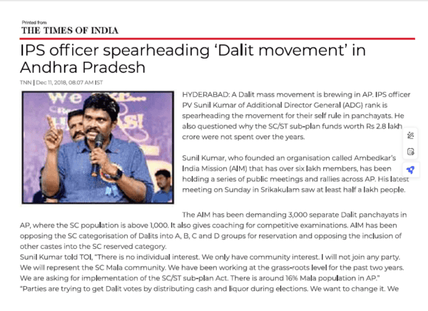 The complaint further accuses Mr. Sunil Kumar of promoting anti-Hindu propaganda under the banner of his organization, targeting the Hindu community, particularly Scheduled Castes. Reports suggest that he has publicly supported granting SC status to Christians and expressed biases favoring specific communities, and actions deemed inappropriate for a serving IPS officer.
