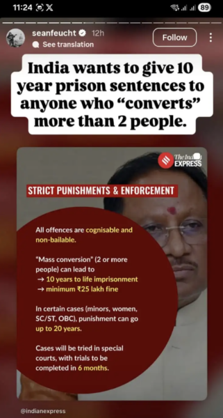 As the controversy intensified, Feucht exited Bharat and began portraying the situation as one of religious persecution. Through a series of social media posts, he claimed that Christians in Bharat face systemic restrictions and amplified concerns regarding anti-conversion laws, suggesting that such laws impose harsh penalties. He also alleged that American lawmakers had reached out and that the US government was unhappy with Bharat’s stance, assertions that remain unverified.