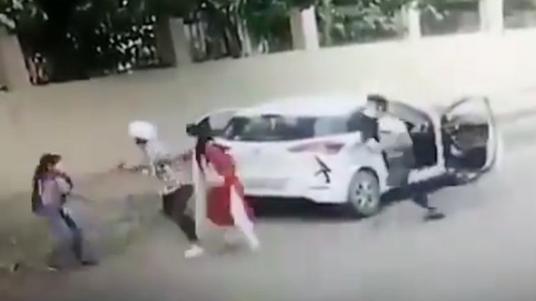 CCTV footage shows a girl named Nikita Tomar being shot dead by an assailant (Taufeeq) outside her college in Ballabgarh, Faridabad. Shooter and associate flees in car. Police have arrested Taufeeq. pic.twitter.com/idOPIDZfDo