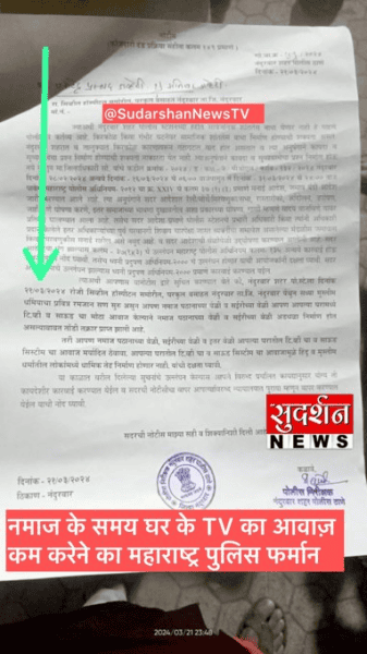 Maharashtra police are repeatedly bearing their anti-Hindu fangs, as has been evidenced in the recent incidents reported from across the state. The latest incident is reported from Nandurbar, where the police have been accused of issuing an ‘Islamic fatwa’ asking Hindus to turn down volumes of their television during Namaz (Islamic prayer).