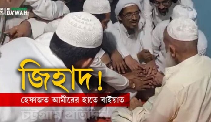 A group of Islamists took an oath to do Jihad in Bharat. Workers and leaders of the Bangladesh-based Islamic organisation ‘Hefazat-e-Islam’ took oath in the presence of Mufti Harun Bin Ezhar.